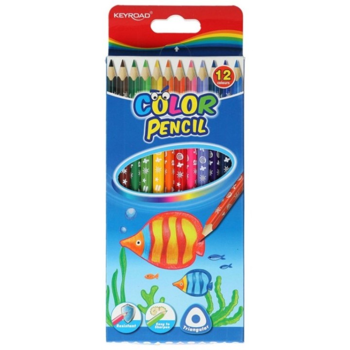 Kredki ołówkowe KEYROAD, trójkątne, 12szt., mix kolorów