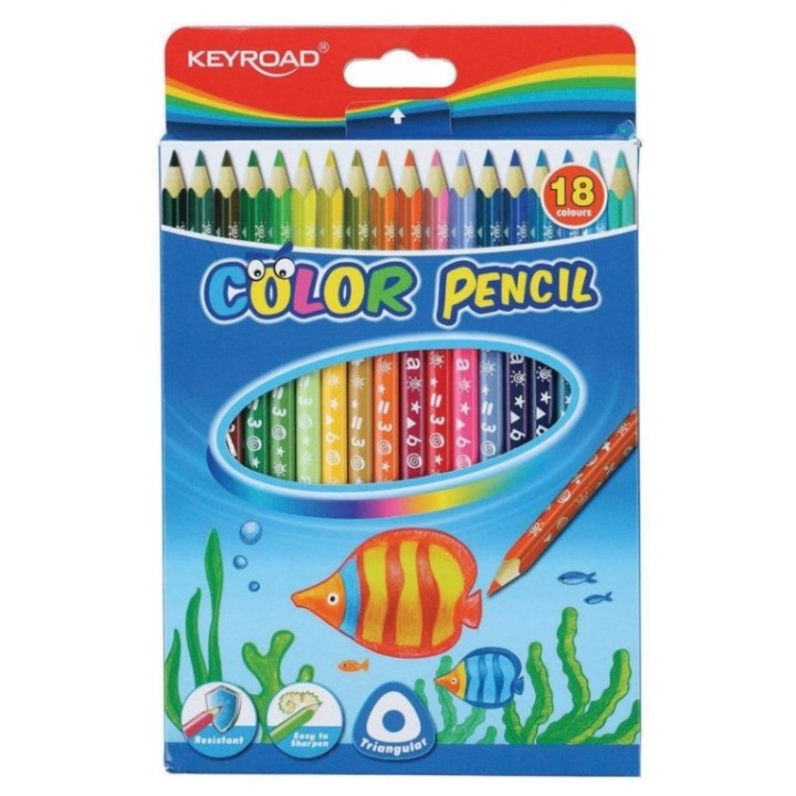Kredki ołówkowe KEYROAD, trójkątne, 18szt., mix kolorów