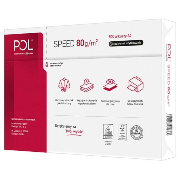 • Papier kserograficzny IP POL SPEED, A4, klasa C, 153CIE, 80gsm, 500ark.
