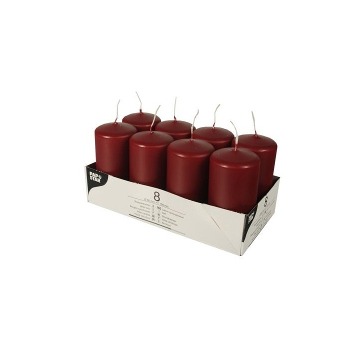 • Świece pieńkowe 10 cm bordowe średnica 5 cm op. 8 sztuk