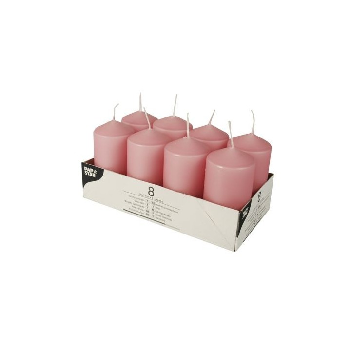 Świece pieńkowe 10 cm ciemny róż średnica 5 cm op. 8 sztuk