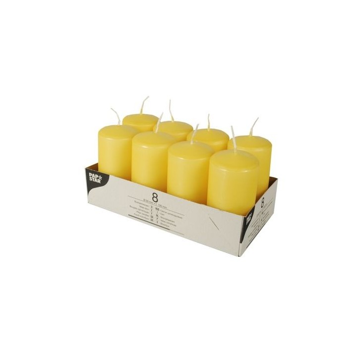 Świece pieńkowe 10 cm żółte złoto średnia 5 cm op. 8 sztuk