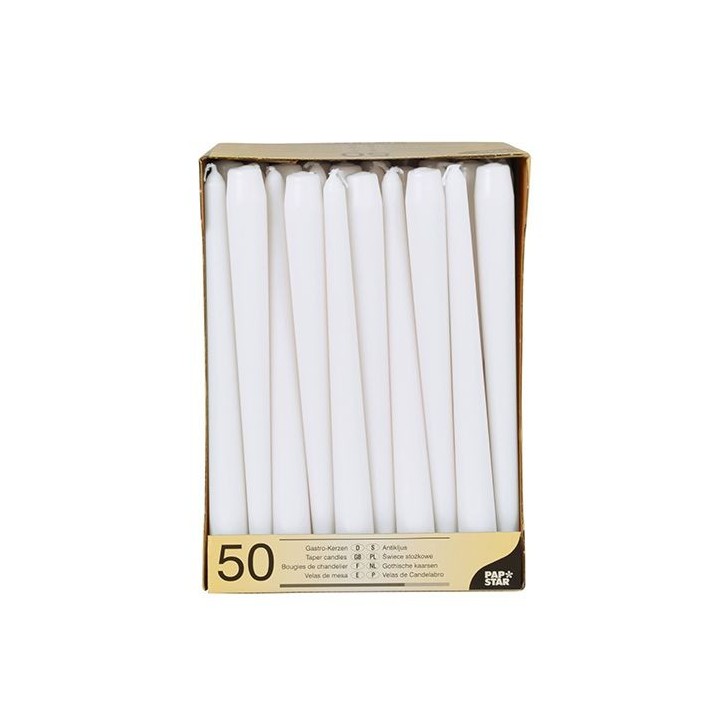 • Świece stożkowe 25 cm białe średnic 2,2 cm op. 50 sztuk
