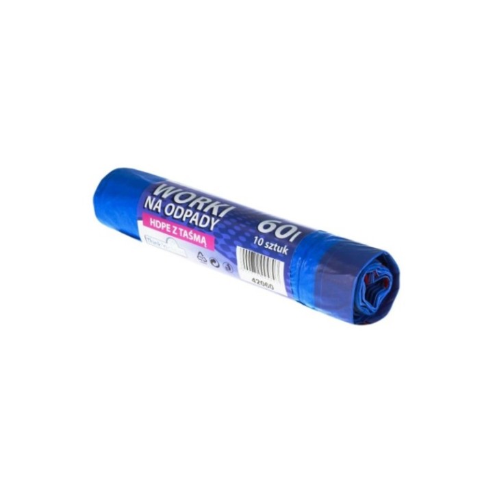 Worki na odpady HDPE 60l z taśmą TnC rol. 10 sztuk