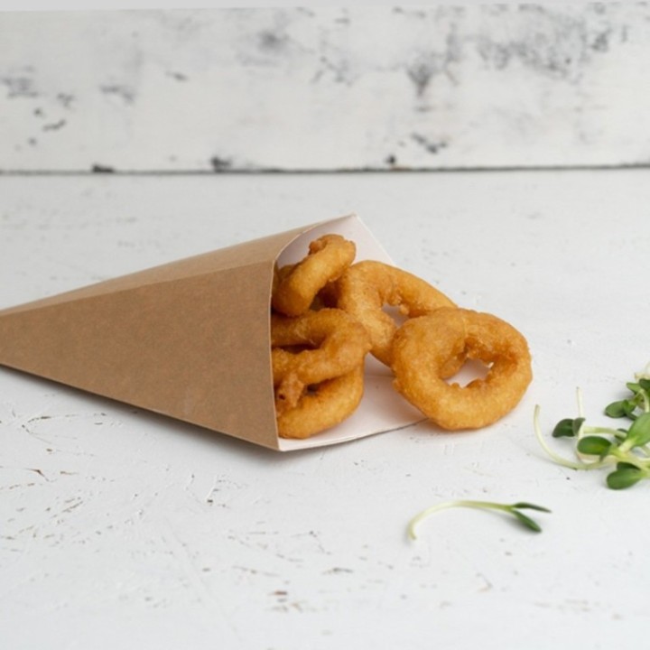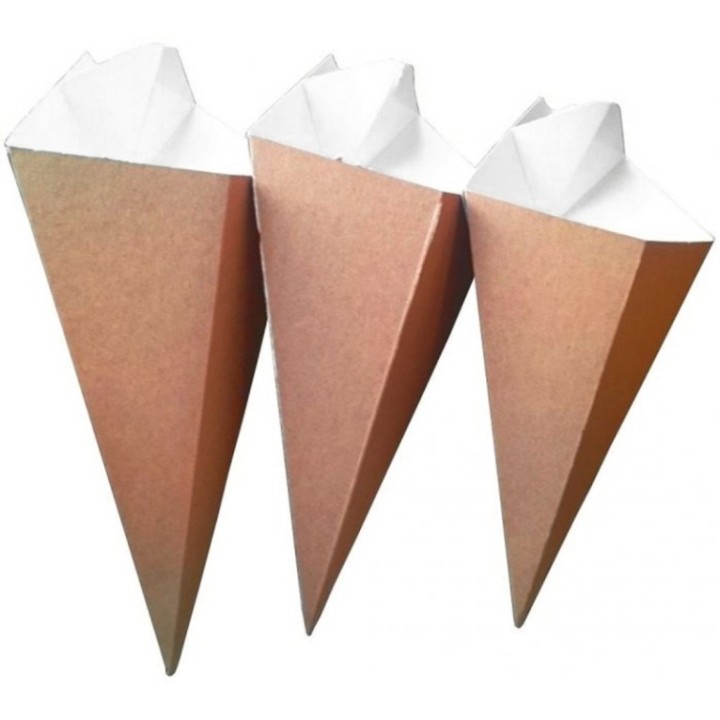 • Rożek na frytki z miejscem na dip, duży, brązowy, 450 ml, 195x270 mm, op. 100 sztuk
