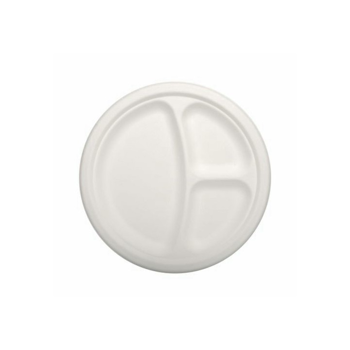 Talerz z trzciny cukrowej, okrągły śr.23xh.2cm trójdzielny, biały op. 50 sztuk