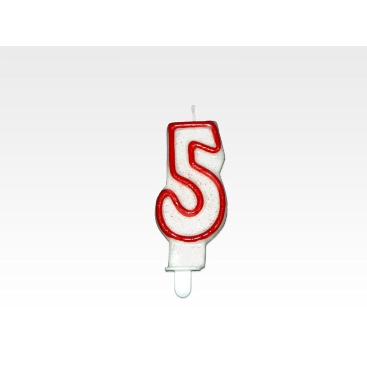 Świeczka - CYFERKA "5", czerwona obwódka z brokatem, cena za 1 szt.