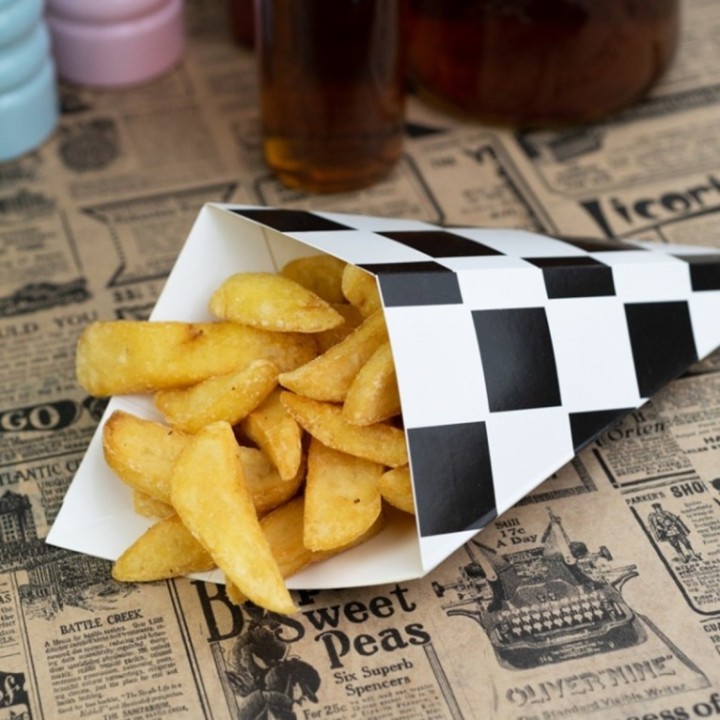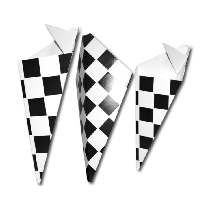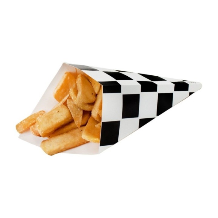 • Rożek na frytki 350g, mały, kratka czarna, z miejscem na dip, 175/250mm op. 100 sztuk