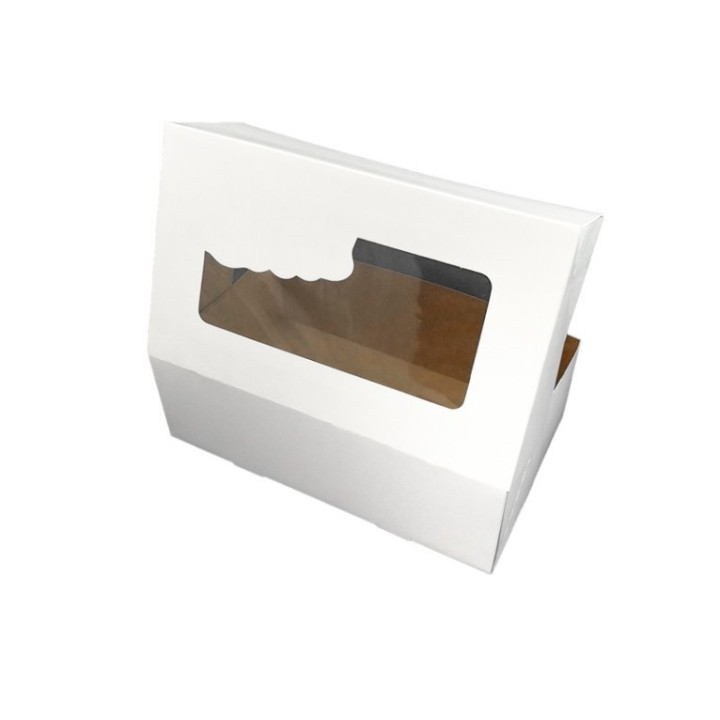 Pudełko cukiernicze 25x15x8 biało/brąz bez nadruku z okienkiem op. 50 sztuk