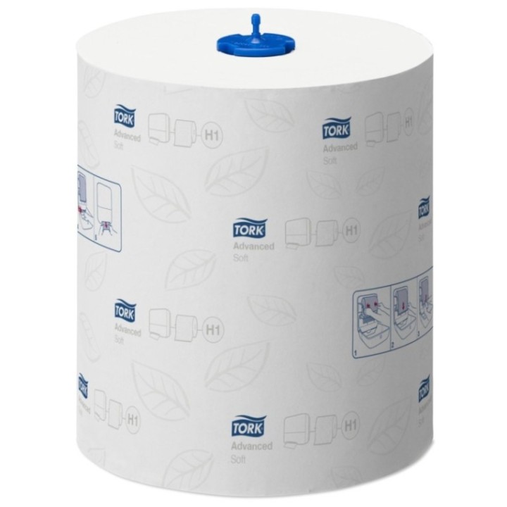 • Tork Matic® miękki ręcznik w roli biały z dekorem szarego listka H1