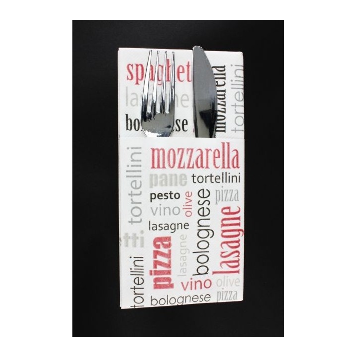 • Etui pocket na sztućce Airlaid Italian Food bordo 40x40cm op. 25 sztuk