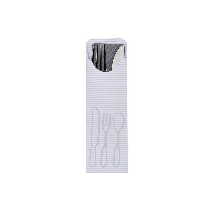 Etui na sztućce szare 23,5x7,3cm z kolorową serwetką op. 100 sztuk