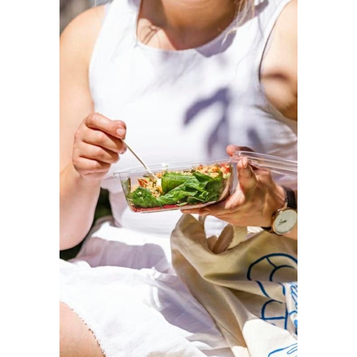 • Pojemnik PLA sałatkowy 950ml z pokrywką VEGWARE 160x185xh.65mm, 100% biodegradowalny op. 50 sztuk