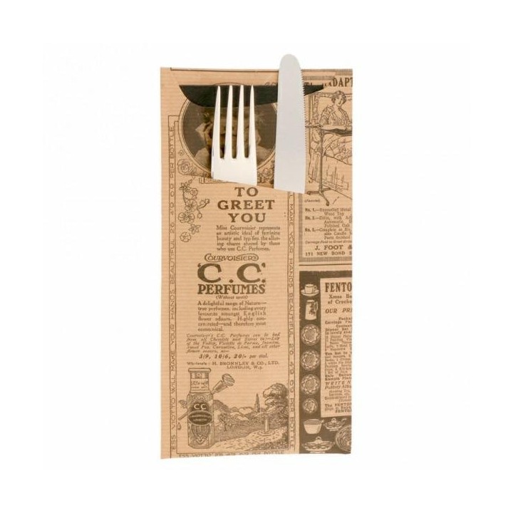 Etui na sztućce KRAFT z czarną serwetką nadruk Times, 11,2x22,5cm op. 100 sztuk