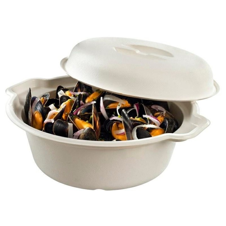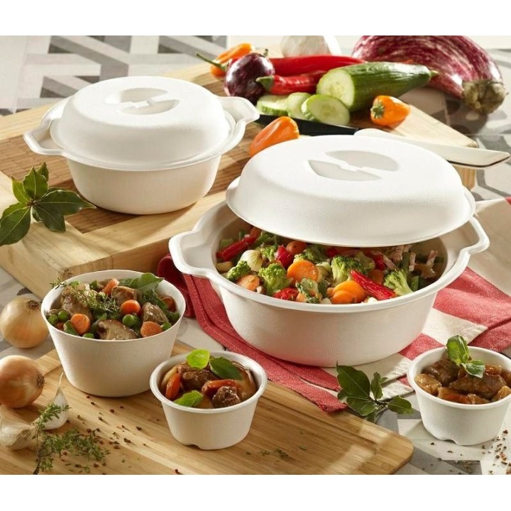 • Miska z trzciny cukrowej 1700ml biała z pokrywką, powleczenie PBAT, biodegradowalna, op. 20 kpl.