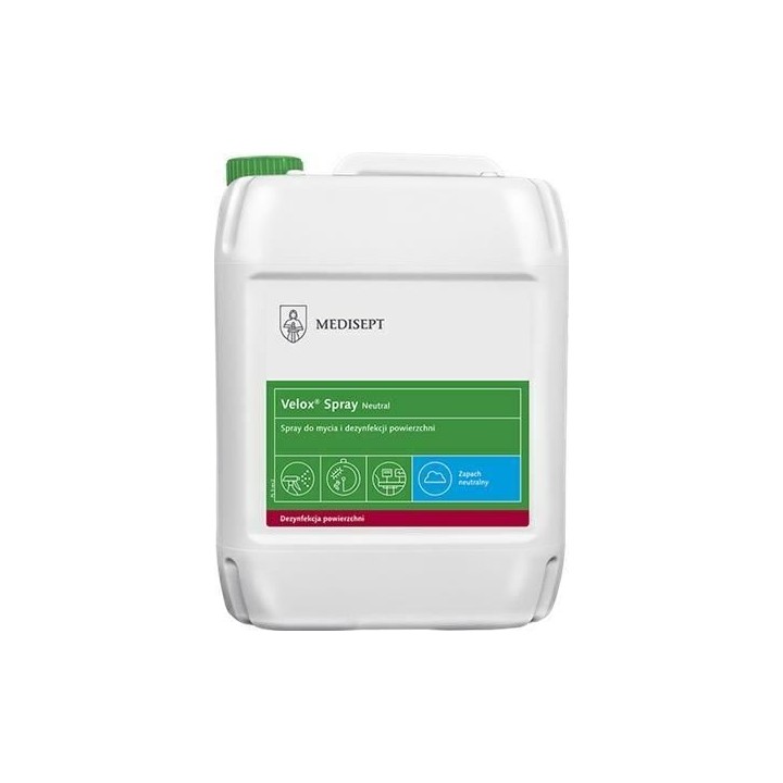 • MEDISEPT Velox Spray Neutral 5L Alkoholowy gotowy do użycia preparat do mycia i dezynfekcji powierzchni sprzętu medycznego