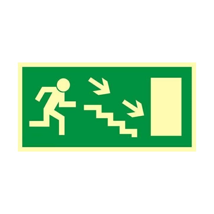 Hänvisning till utrymningsväg nedför trappan till höger (tilläggsskylt) CE - 150 x 300mm AC018CEPS