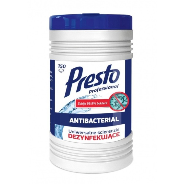 Uniwersalne ściereczki dezynfekujące PRE STO 2w1, w tubie, 150szt., białe op. 1 szt.