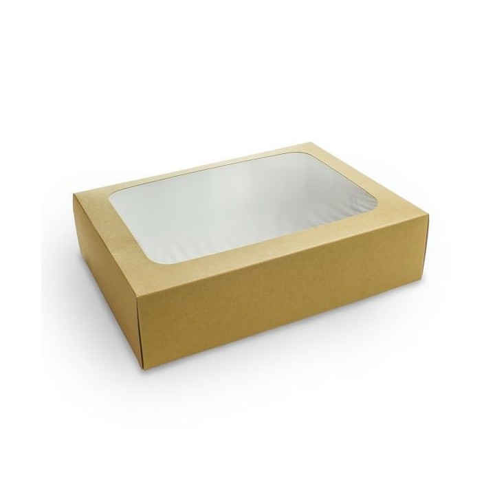Pudełko na kanapki kraft, okno PLA op.50szt., 310x225x82mm, biodegradowalne