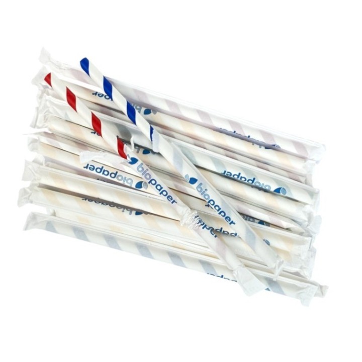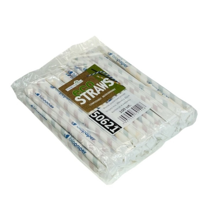 Słomki papierowe śr.8mm dł.20cm w paski op.100szt (k/30) konf. w papierku MIX KOLORÓW TnG Stripes mix