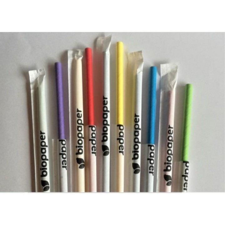 • Słomki papierowe śr.7mm dł 20cm MIX kolorów, op.150szt (k/23) konf. w papierku TnG