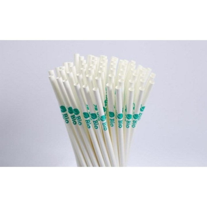 • Słomki papierowe śr.6mm dł 20cm BIO białe z narukiem BIO, op.250szt (k/28) TnG