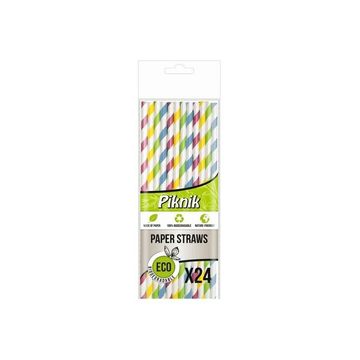 • PIKNIK słomki papierowe op.24szt mix kolorów, paski (k/100) śr.6mm dł.20cm