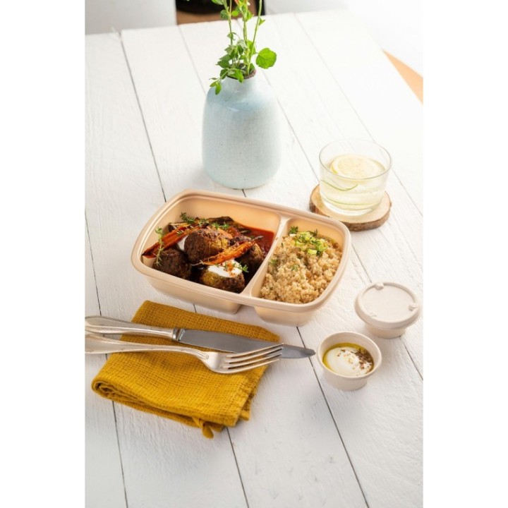 • FastPac RC23 N lunch pojemnik 600+300ml op.75szt (k/4) dwudzielny, PP, beżowy, Sabert