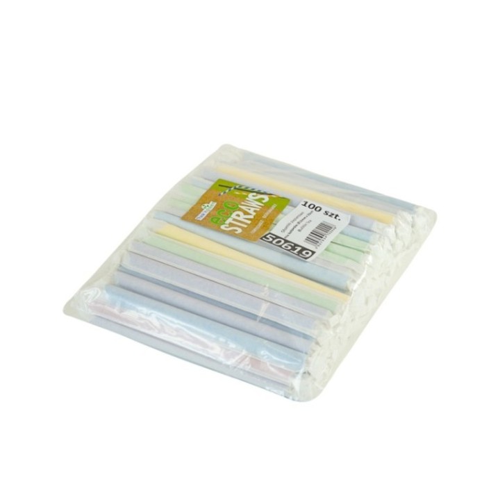 Słomki papierowe śr.12mm dł.20cm MIX kolorów, Bubble Tea, op.100szt. (k/15), konf. w papierku TnG, ściete