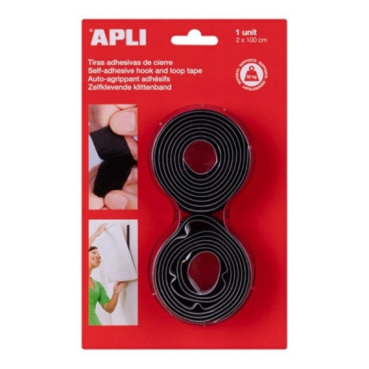 Taśma samoprzylepna z rzepem APLI 20mm, 1m, czarna, op.2szt.