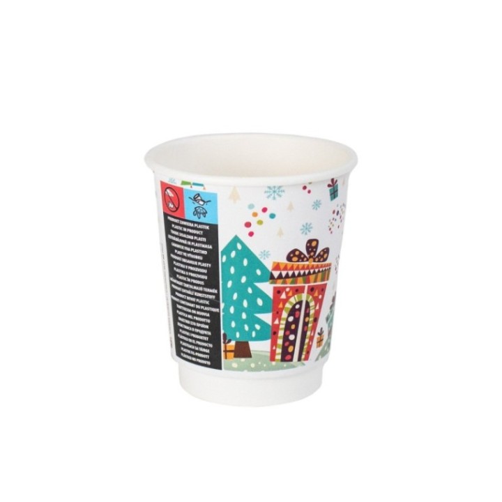 Kubek PAP/PE DW 250ml Nadruk Świąteczny, op.20szt. (k/25) śr.80mm, SUP