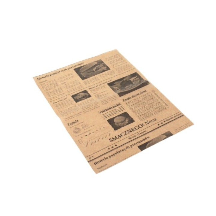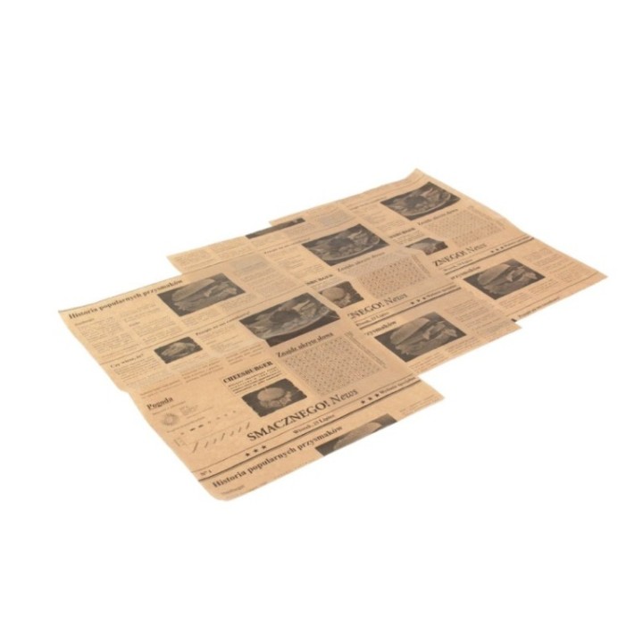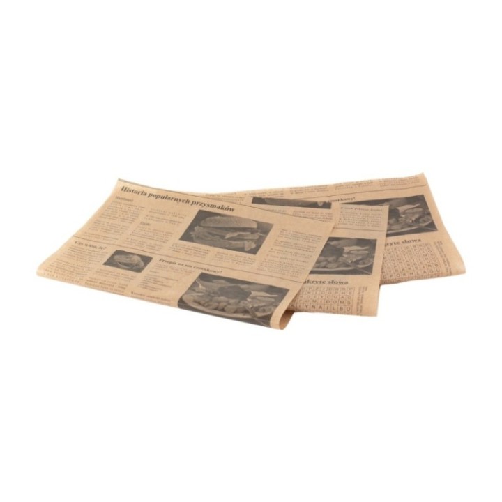 Papier pakowy 32+10PE 30x40cm brąz op.1000arkuszy, powlekany,nadruk GAZETA