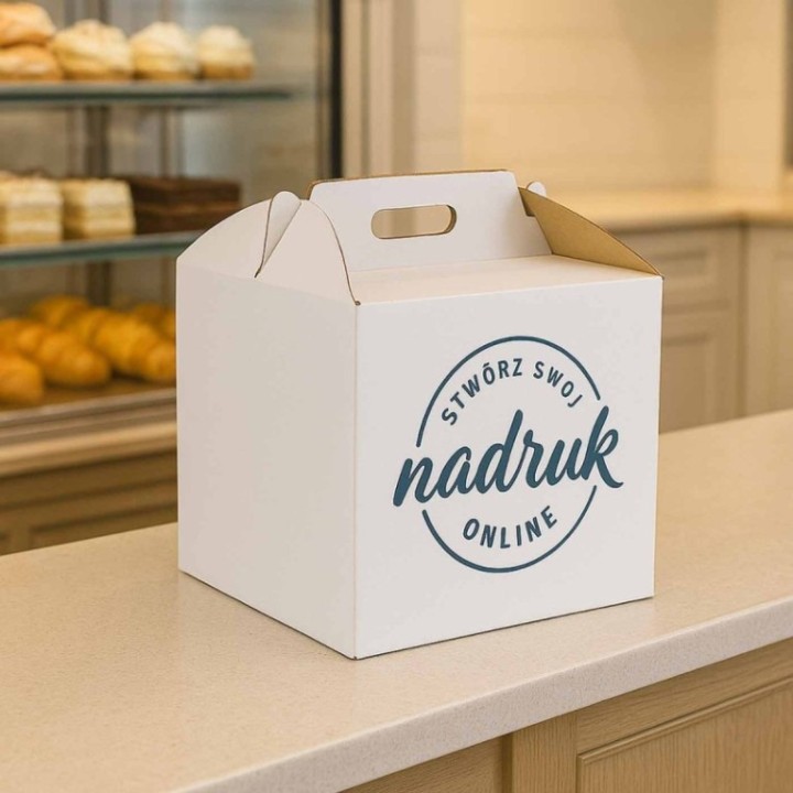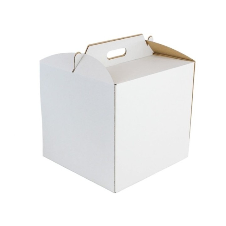 • Pudełko na tort z rączką 32x32x30cm biało-brązowe, op.10szt., wysokie, TnP