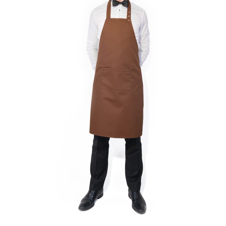Fartuch dla kelnerów w kolorze brązowym wykonany w 35% z bawełny oraz w 65% z poliestru. Posiada kieszonkę na notes do zamówień, jest regulowany na 3 springi. Zapewnia kelnerowi wygodę oraz elegancki wygląd. Do zakupu oferujemy także możliwość naniesienia logo restauracji lub jej nazwę na fartuch – w tym celu prosimy o kontakt mailowy.