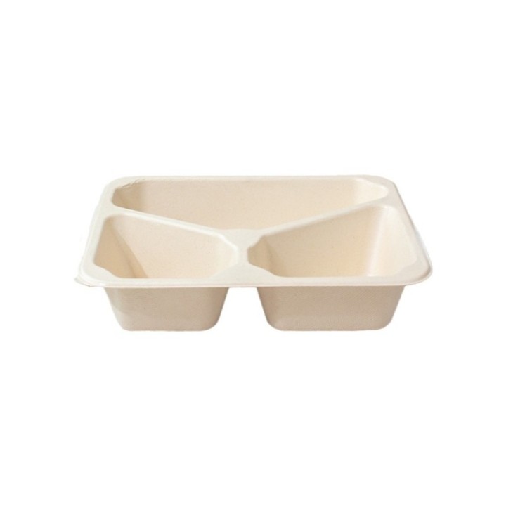 • Pojemnik do zgrzewu 227/178/3 H50 trójdzielny op. 100 szt (k/4) z trzciny cukrowej, powlekany PE, kolor naturalny