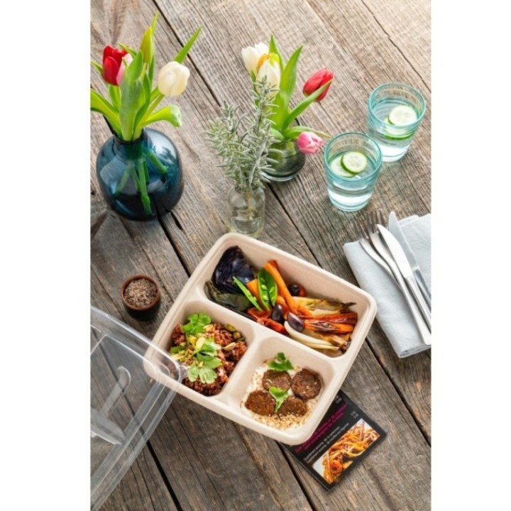 • BePulp SQ23 pojemnik kwadratowy 900ml op.75szt. trójdzielny (k/4) 23x23x4cm, Sabert