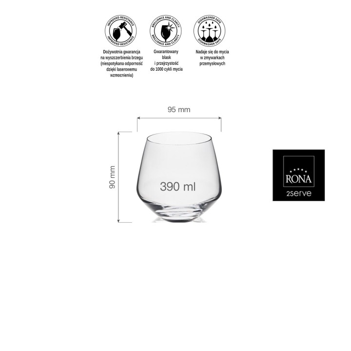 • Neutralny odcień szkła odzwierciedla oryginalny kolor napoju