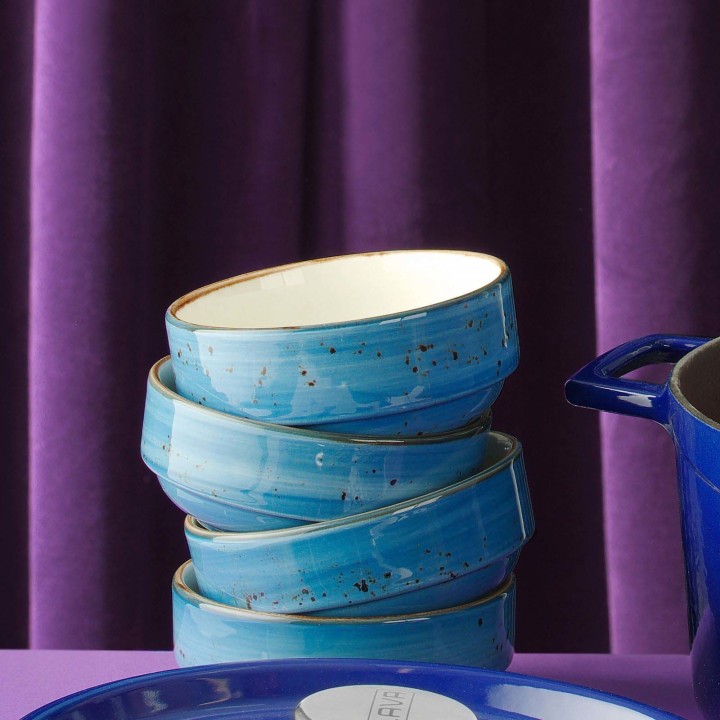 Bogata kolekcja ręcznie zdobionej porcelany w czterech soczystych kolorach. Dopasuj elementy pomarańczowe, niebieskie, szare i oliwkowe, aby uzyskać unikalny i zaskakujący wygląd stołu, a jedzenie będzie prezentować się tak samo dobrze, jak smakuje. Zastawa wytrzymała i odporna, zaprojektowana tak, aby wytrzymać trudy użycia w profesjonalnej kuchni.