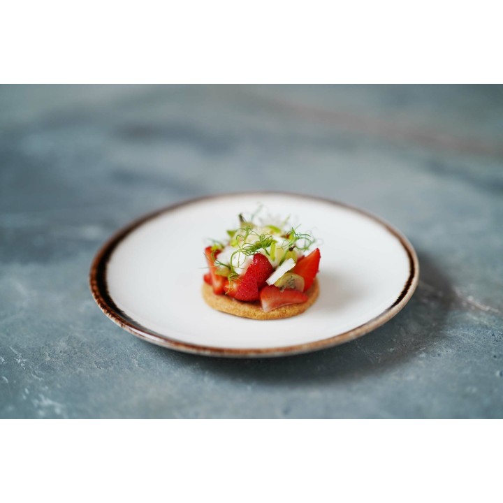 Bogata kolekcja recznie zdobionej porcelany w pięciu soczystych kolorach. Dopasuj elementy kremowe, pomarańczowe, niebieskie, szare i oliwkowe, aby uzyskac unikalny i zaskakujący wygląd stołu, a jedzenie będzie prezentować się tak samo dobrze, jak smakuje. Zastawa wytrzymała i odporna, zaprojektowana tak, aby wytrzymac trudy użytkowania w profesjonalnej kuchni. Materiał: porcelana typu Vitrified Temperatura wypalania: 1050° i 1400°C Odpornosc na temperature: 180°C