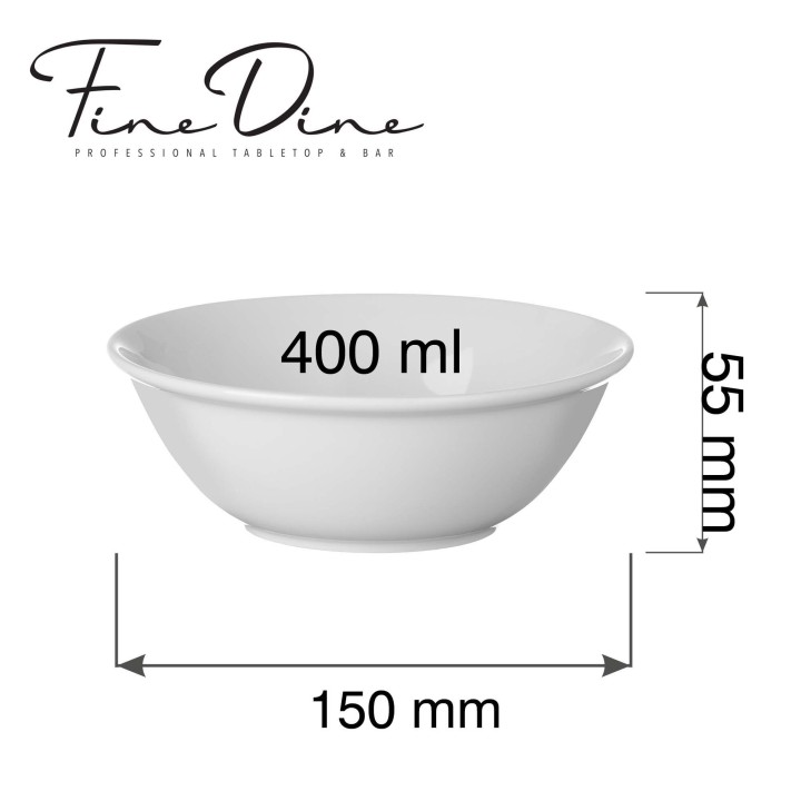 Miska bufetowa Pure Bianco 400ml, 150mm z kolekcji Fine Dine Pure Bianco to profesjonalna porcelana gastronomiczna stworzona do intensywnego użytkowania w restauracjach, hotelach oraz cateringu. Chłodny, śnieżnobiały odcień porcelany doskonale eksponuje serwowane potrawy i podkreśla ich kolorystykę, nadając kompozycjom elegancki i nowoczesny charakter.