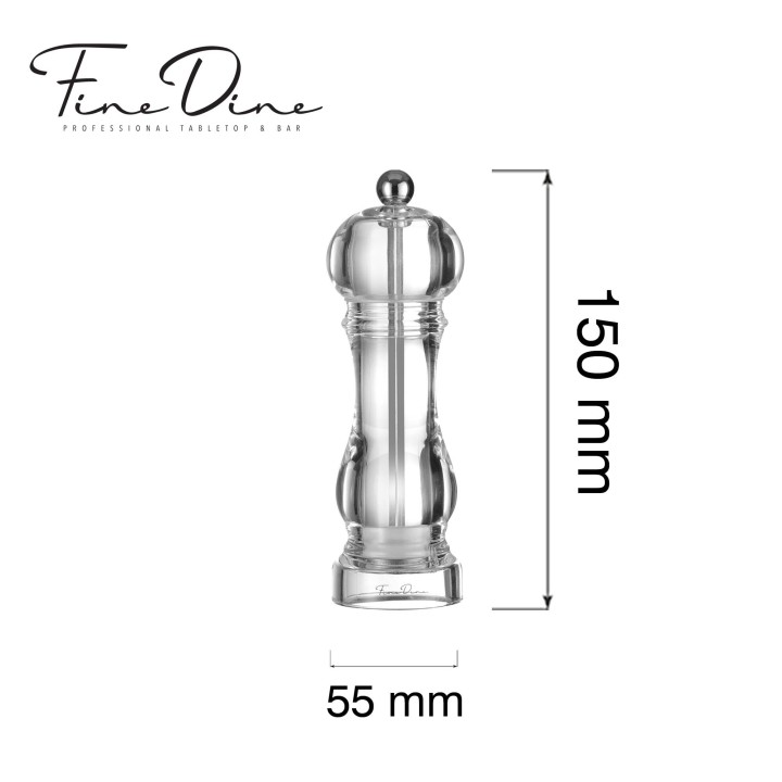 Claro to linia młynków Fine Dine wyróżniająca się transparentnym akrylem oraz nowoczesną, lekką formą. Przezroczysta konstrukcja podkreśla zawartość i ułatwia kontrolę ilości przypraw, a kompaktowy rozmiar sprawia, że młynki są wyjątkowo poręczne i idealnie pasują do codziennego serwisu.
