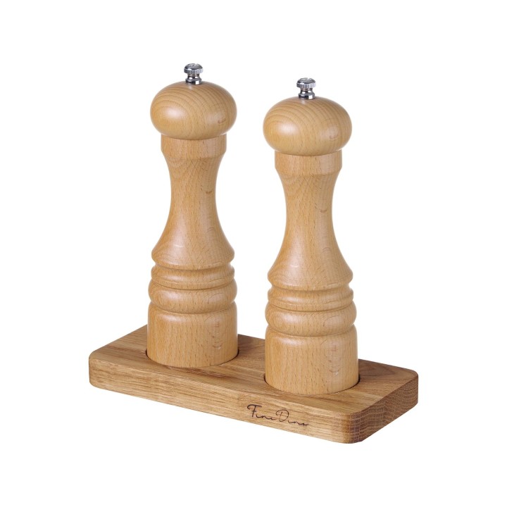 Elegancka podstawka pod młynki do soli i pieprzu z kolekcji Madeira, wykonana z naturalnego drewna dębowego. Zapewnia estetyczną i stabilną ekspozycję przypraw na stole.