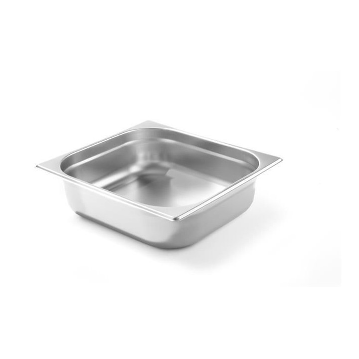 Wykonany ze stali nierdzewnej AISI 201 Duża odporność termiczna (od −40°C do 300°C) Możliwość stosowania w piecach konwekcyjnych, lodówkach, bemarach i podgrzewaczach Zaokrąglone krawędzie Nadaje się do mycia w zmywarkach Wysokość (mm): 65Długość (mm): 354Maksymalna objętość (L): 5,5